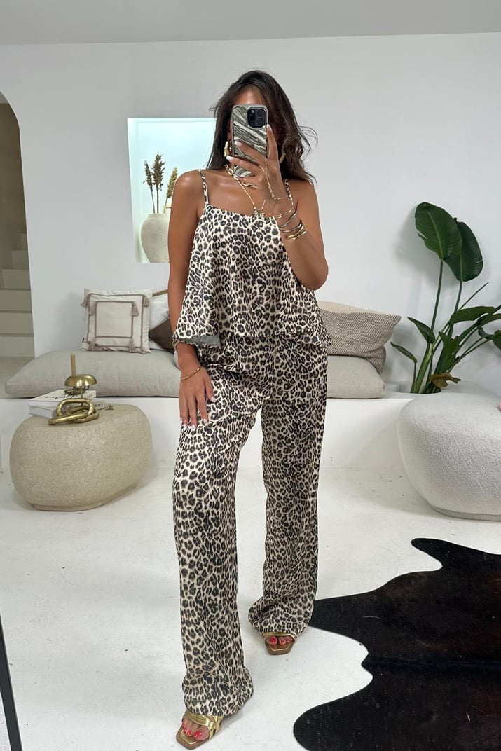 Of je nu op weg bent naar een chique feest of simpelweg een vleugje glamour aan je alledaagse look wilt toevoegen, deze prachtige leopard set is een onmisbare aanwinst voor je garderobe.