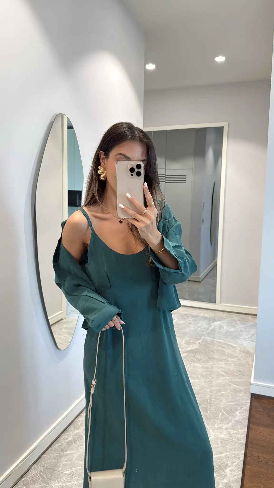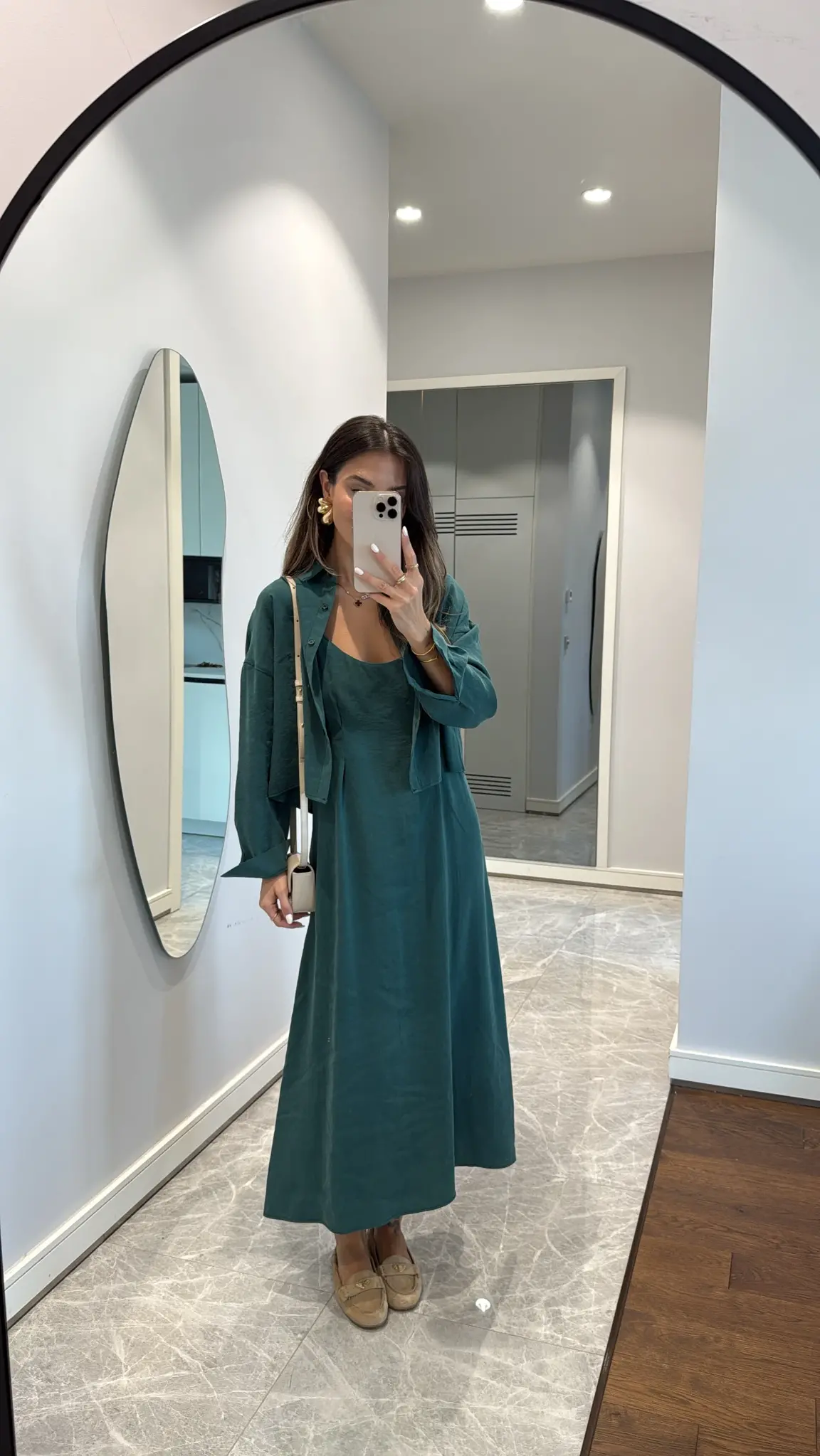 2 Delige Set Maxi Jurk Met Blouse Groen