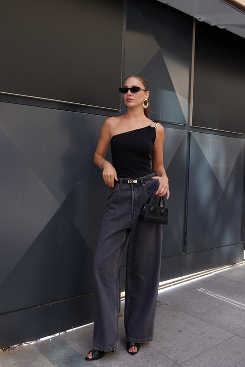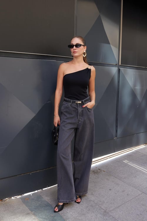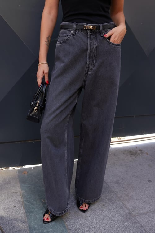 Deze wijde high-waist jeans met rechte pijpen accentueert je taille en past bij elke look. Perfect te combineren met T-shirts, blouses of crop tops en af te maken met sneakers of sandalen.