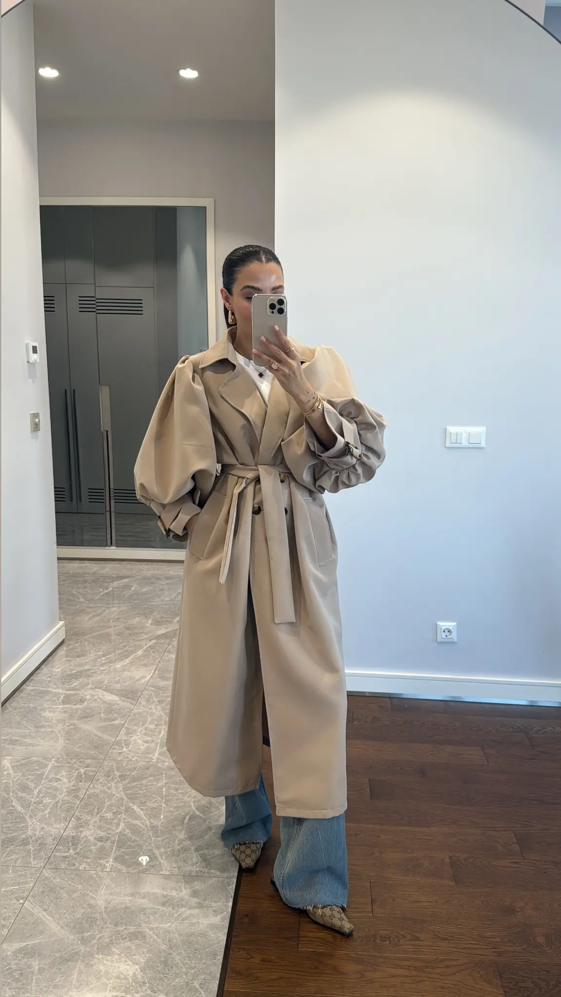 Er is één jas waarmee je gegarandeerd goed zit, Dé klassieke trenchcoat. Deze lange oversized trenchcoat met ballonmouwen , heeft 2 steekzakken , 2 knopen aan de voorkant, bijpassend ceintuur en ziet er super uit in combinatie met jouw favoriete outfit.